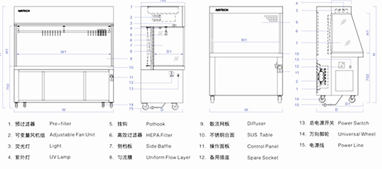 2、采用進口不銹鋼臺面和后襯板,再配以透明側(cè)檔板,使整個工作區(qū)顯得寬敞明亮。
